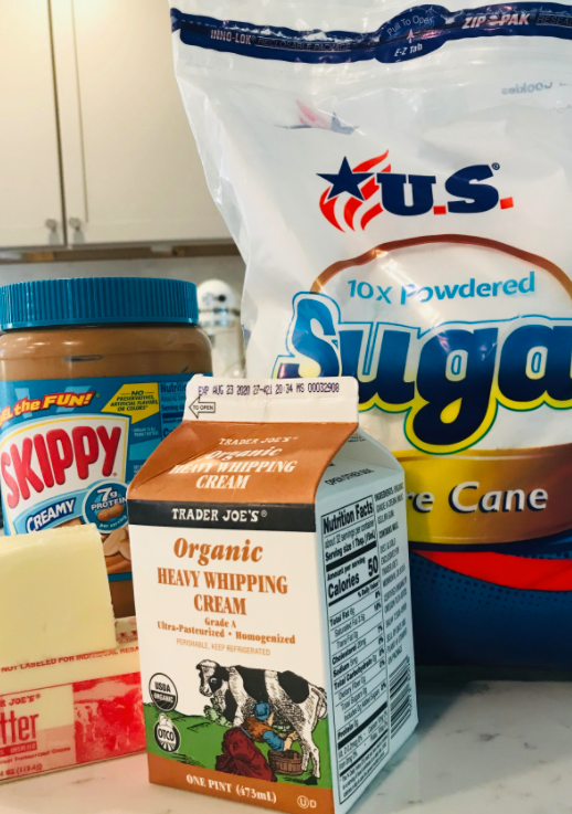 - To make the frosting, cream together the softened butter, and the 2/3 cup of peanut butter. If there are clumps of butter, cream it on high until they are combined. Add 1/2 of the 2 cups of powdered sugar at a time. Scrape down the sides of the bowl after each addition.