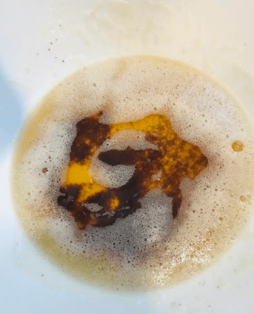 - Once the butter starts to lightly bubble, begin stirring with a heat proof silicone spatula. Keep stirring consistently, giving it a 30 second break ever 45 seconds. It sounds precise but trust me. After the butter is popping and bubbling, around 3-4 minutes, it should start to get a little foamy. Keep stirring. Once you notice amber colored bits at the bottom of the pan, set a timer for exactly one minute. Stir for that one minute and immediately remove from the heat. It should look like the butter pictured above.