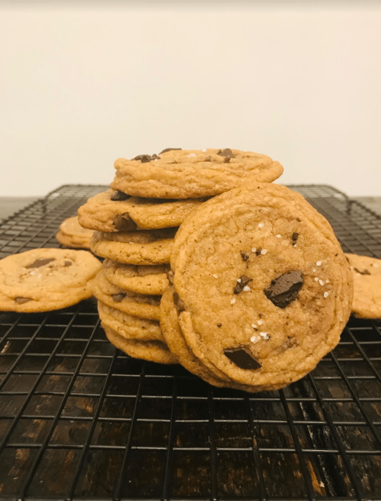 These cookies are topped off with some flaky sea salt. That gives it an even better flavor. Also these cookies taste best with dark, or bittersweet chocolate chips to cut the sweetness, but you can certainly use any other type you would like.